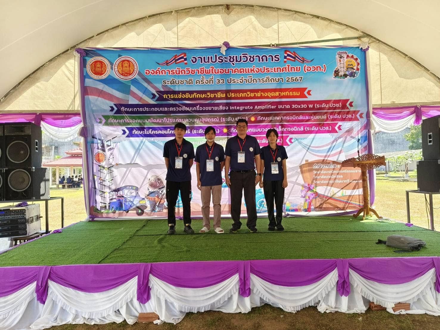 ขอแสดงความยินดีกับนักเรียนที่ได้รับรางวัลชมเชย มาตรฐานเหรียญทอง การแข่งขันทักษะการออกแบบพัฒนาโปรแกรมควบคุมอุปกรณ์ ระดับ ปวช. ประจำปีการศึกษา 2567 ในงานการแข่งขันทักษะวิชาชีพระดับชาติ ณ วิทยาลัยเทคนิคตรัง จ.ตรัง ประกอบด้วย