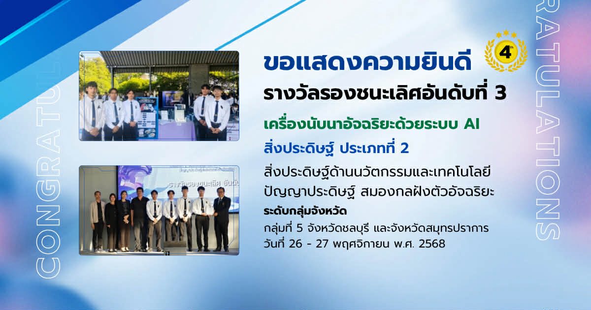 แผนกวิชาช่างอิเล็กทรอนิกส์ วิทยาลัยเทคนิคสมุทรปราการ เข้าร่วมการประกวดสิ่งประดิษฐ์ของคนรุ่นใหม่ ประจำปีการศึกษา 2568 ระดับกลุ่มจังหวัด (กลุ่มที่ 5 จังหวัดชลบุรีและจังหวัดสมุทรปราการ) ระหว่างวันที่ 26-27 พฤศจิกายน 2568 ณ อาคาร 78 ปี วิทยาลัยเทคนิคชลบุรี